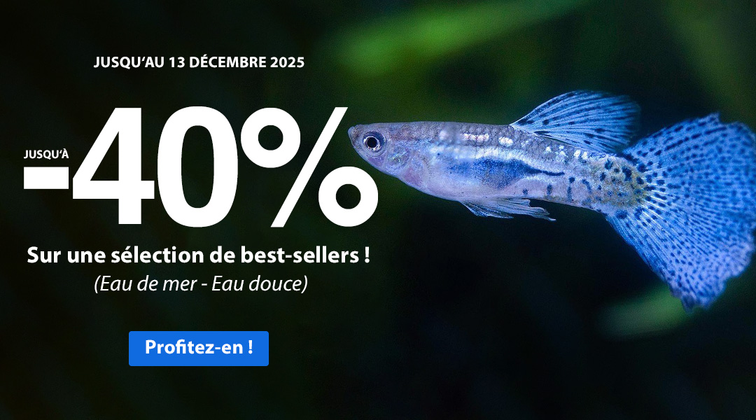 Découvrez nos offres spéciales valables du 9 au 13 décembre Paracanthurus hepatus Paracanthurus hepatus (4-6 cm) 63,25€..105,45€..-40% Astrea spp. Trochus spp. Escargot nettoyeur astrea / trochus (2,5-3,5 cm) 3,60€..6,00€..-40% Paracheirodon innesi (néon bleu) (1,2-1,4 cm) 0,70€..1,20€..-40% Neocaridina spp. Crevette Neocaridina sp. mangeuse d’algues (1-1,3 cm) 4,10€..6,80€..-40% Neocaridina davidi (heteropoda) var. red […]