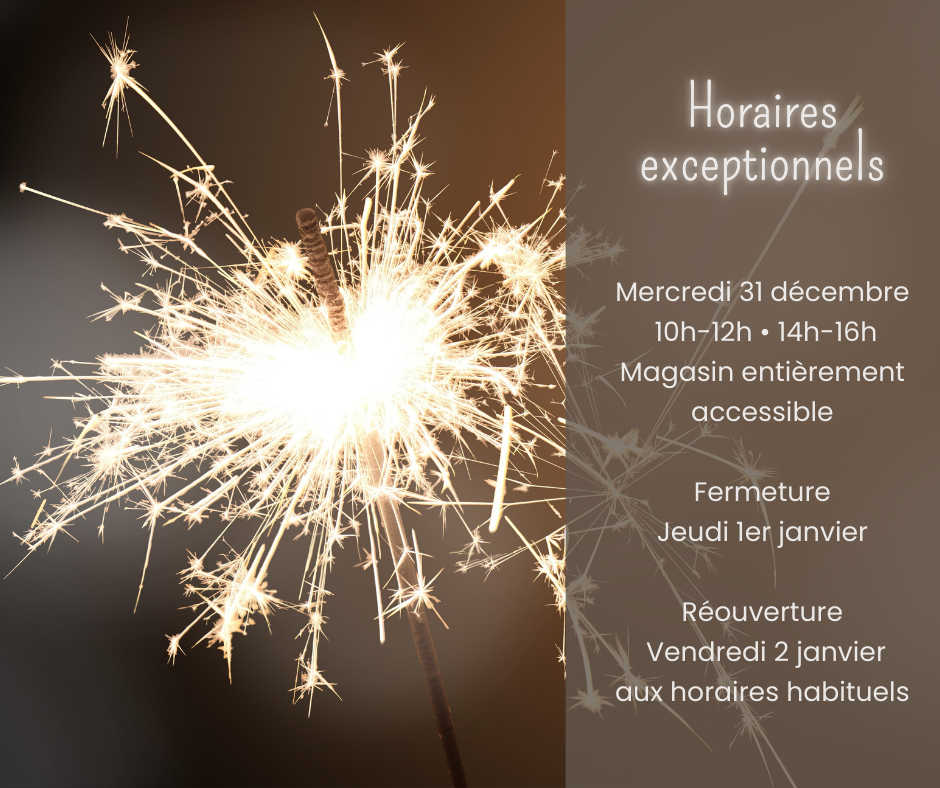 Toute notre équipe se fera un plaisir de vous accueillir à nouveau le vendredi 2 janvier 2026 aux horaires habituels.